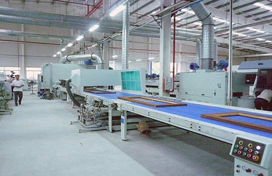 工艺要求 无溶剂UV底漆、水性色漆、PU面漆 产品种类 木门、门套、线条 产线数量 12条 设备特色 无溶剂UV底漆自动连线、PU面漆表干连线。 生产产能 UV底漆喷涂线:400套门/8h (生产员3人/线)